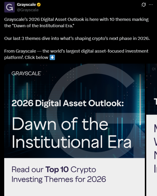 شرکت Grayscale معتقد است ترکیب فشارهای کلان اقتصادی و پیشرفتهای مقرراتی میتواند مسیر بازار صعودی بعدی رمزارزها را در سال ۲۰۲۶ هموار کند و در همین راستا Dragonfly نیز از افزایش پذیرش نهادی و احتمال ورود شرکتهای بزرگ فناوری به این بازار سخن گفته است.