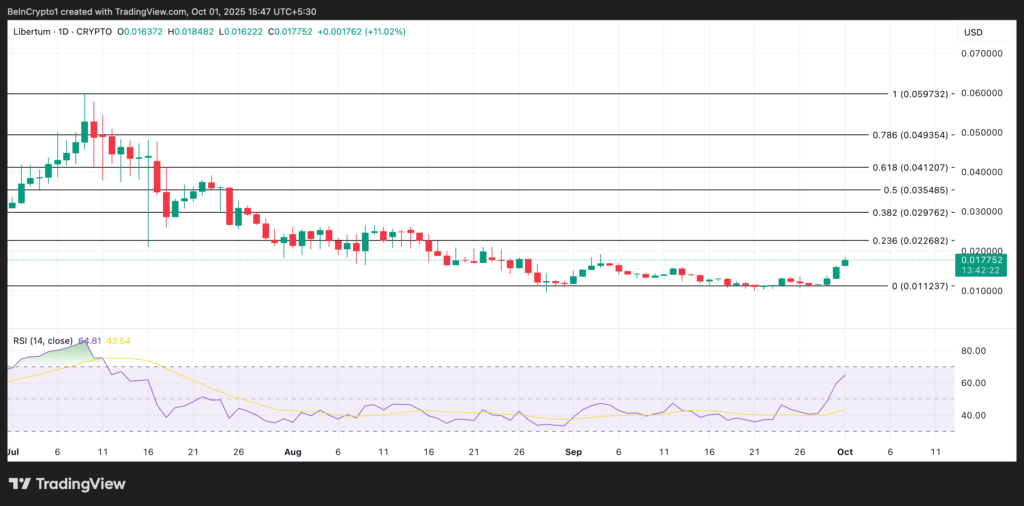 اگر این روند ادامه یابد، لیبرتوم میتواند به رشد خود ادامه دهد و حتی به بالای سطح ۰.۰۲۲۶۸ دلار برسد. اما سناریوی معکوس هم وجود دارد؛ در صورت افزایش فشار فروش، احتمال افت قیمت تا محدوده ۰.۰۱۱۲۳ دلار دور از ذهن نیست.