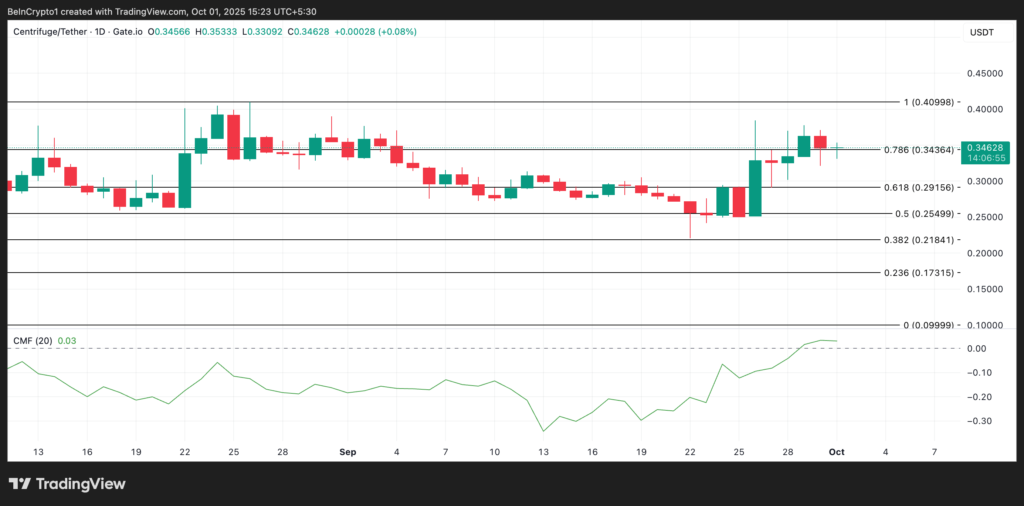 توکن CFG ستون اصلی پلتفرم غیرمتمرکز سنتریفیوژ است؛ هدف این پلتفرم اتصال داراییهای دنیای واقعی به حوزه دیفای است. در زمان نگارش این گزارش، قیمت سنتریفیوژ حدود ۰.۶۱ دلار ثبت شده و طی یک هفته گذشته جهشی ۲۷٪ را تجربه کرده است. این رشد دو رقمی نشان میدهد که فشار خرید قدرتمندی پشت این حرکت قرار دارد و احتمال ادامه روند صعودی در کوتاهمدت وجود دارد.