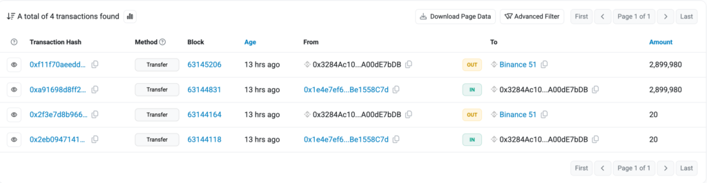 بر اساس دادههای پلتفرم بیاسسیاسکن (BscScan)، یکی از کیف پولها ابتدا انتقال آزمایشی ۲۰ توکن استر انجام داده و بلافاصله پس از آن، تراکنشی بزرگتر به ارزش ۴.۸ میلیون دلار را به کیف پول اسپات بایننس ارسال کرده است. چنین رفتاری معمولاً نشانهای از آمادهسازی برای لیست شدن در صرافی است.