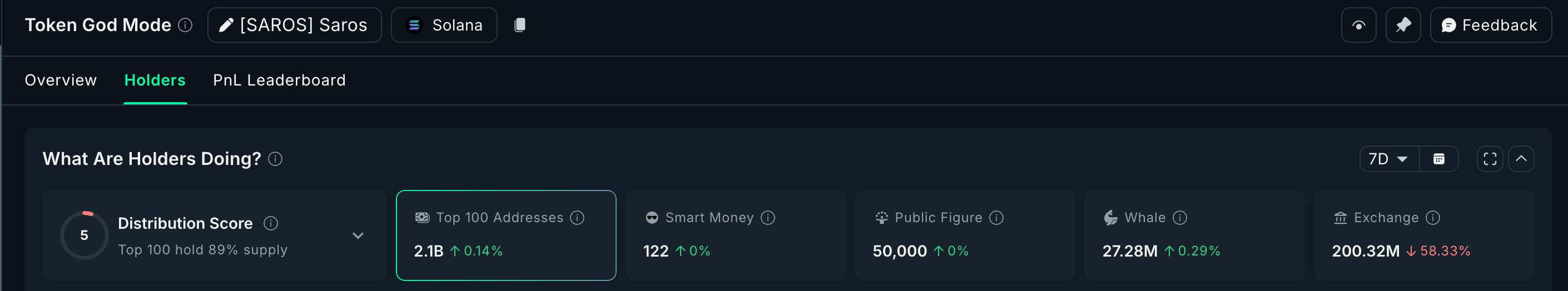 همزمان، موجودی صرافیها با ۱۵.۱۷٪ کاهش مواجه شده که نشان میدهد فشار عرضه کوتاهمدت کاهش یافته و سرمایهگذاران عمدتاً به ذخیرهسازی بلندمدت یا انتقال دارایی به کیف پولهای سرد روی آوردهاند. حتی صد آدرس بزرگ شبکه نیز بیش از ۱۲ میلیون توکن به داراییهای خود افزودهاند.