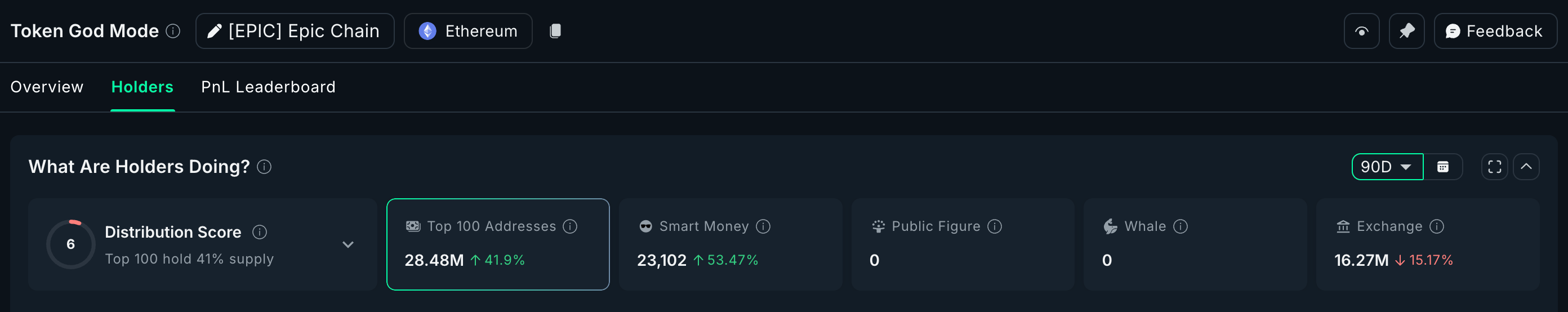 طبق دادههای آنچین، میزان توکنهای نگهداریشده توسط اسمارت مانی (Smart Money) در سه ماه گذشته ۵۳.۴۷٪ رشد داشته است.