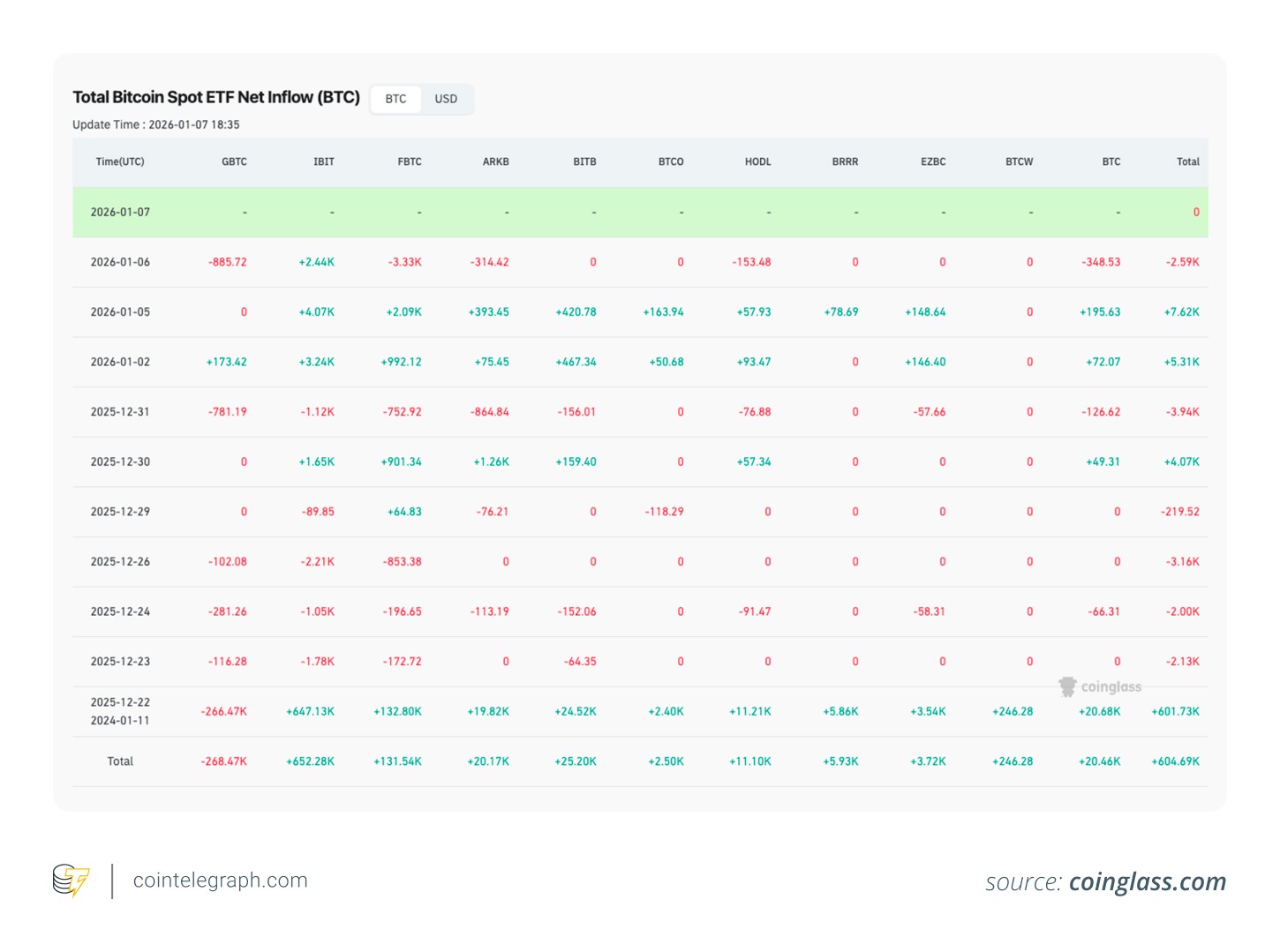 جریان خالص ورود سرمایه به ETFهای اسپات بیت کوین – منبع: coinglass