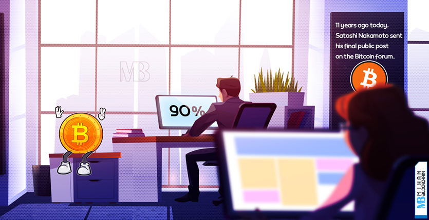 امروز ۱۱ سال از آخرین پست ارسال شده توسط ساتوشی ناکاموتو میگذرد. این در حالی است که تاکنون بیش از ۹۰٪ از کل تعداد بیت کوینهایی که قرار است وجود داشته باشد استخراج شده است. با در نظر گرفتن ظرفیت کل ۲۱,۰۰۰,۰۰۰ بیت کوین اکنون بیش از ۱۸,۹۰۰,۰۰۰ بیت کوین در چرخه گردش قرار گرفته است.