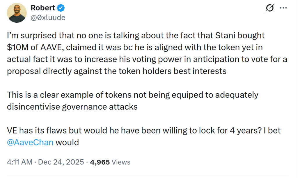 این نگرانی‌ها تنها به یک صدا محدود نمانده. کاربر شناخته‌شده حوزه کریپتو با نام سیسیفوس (Sisyphus) نیز با اشاره به سوابق معاملاتی کولچوف ادعا کرد که او ممکن است طی سال‌های ۲۰۲۱ تا ۲۰۲۵ میلیون‌ها دلار از توکن‌های AAVE خود را فروخته باشد. همین موضوع، از نگاه منتقدان، پرسش‌هایی درباره منطق اقتصادی خرید دوباره سنگین توکن و انگیزه‌های پشت آن ایجاد کرده است.