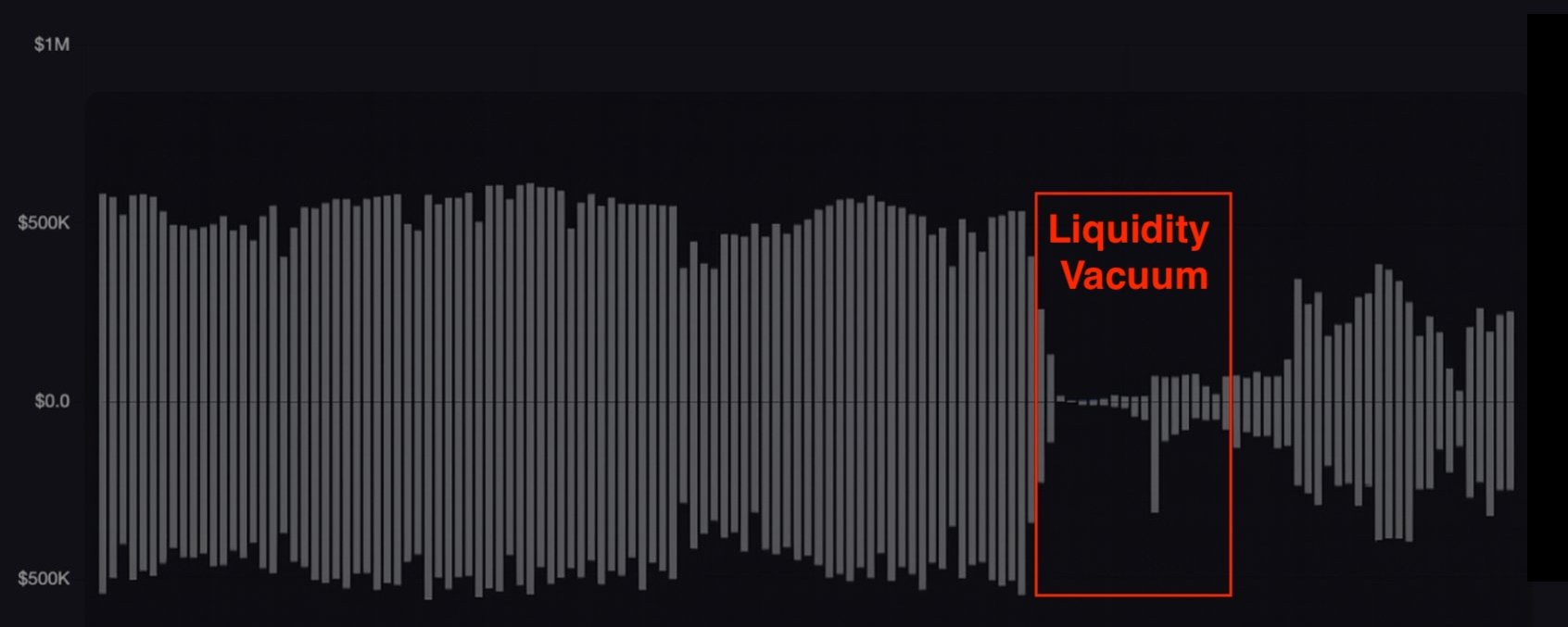 در این بازه دو دقیقهای، بایننس یک برداشت همزمان و غیرعادی نقدینگی را تجربه کرد. دفترهای سفارش (Order Books) تقریباً به طور کامل تخلیه شدند و بازار را در یک خلاء مطلق و کوتاه مدت قرار دادند. این پدیده، برخلاف سایر بحرانهای تاریخی مانند سقوط مارس ۲۰۲۰، فروپاشی لونا (LUNA)، یا بحران FTX، مقیاسی غیر قابل توجیه داشت.