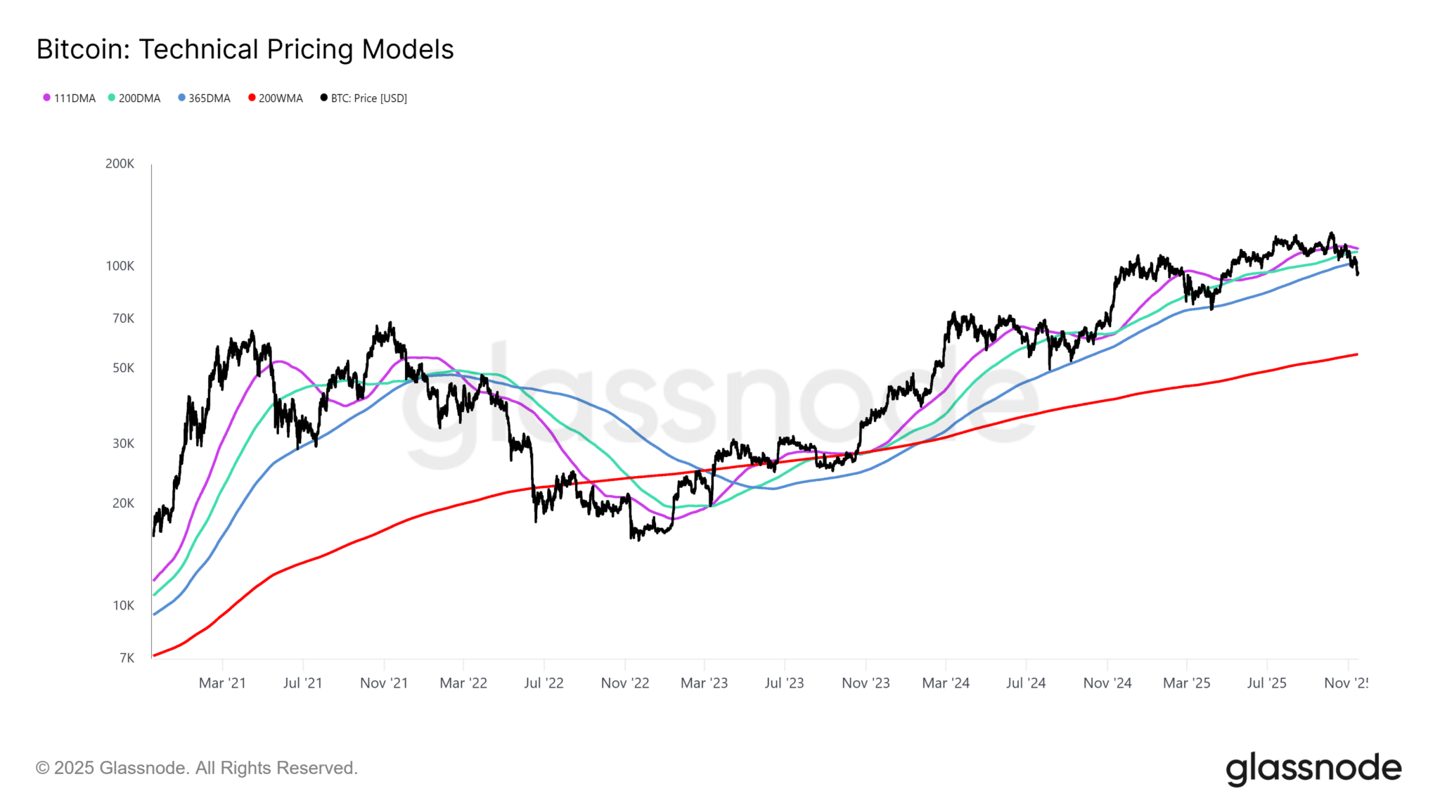 از منظر تکنیکال، بیتکوین یا میتواند زیر میانگین ۳۶۵روزه وارد فاز تثبیت شود یا اگر ضعف بازار ادامه یابد، تا سطح بعدی یعنی ۵۵ هزار دلار (میانگین متحرک ۲۰۰هفتهای – 200WMA، خط قرمز) کاهش یابد.