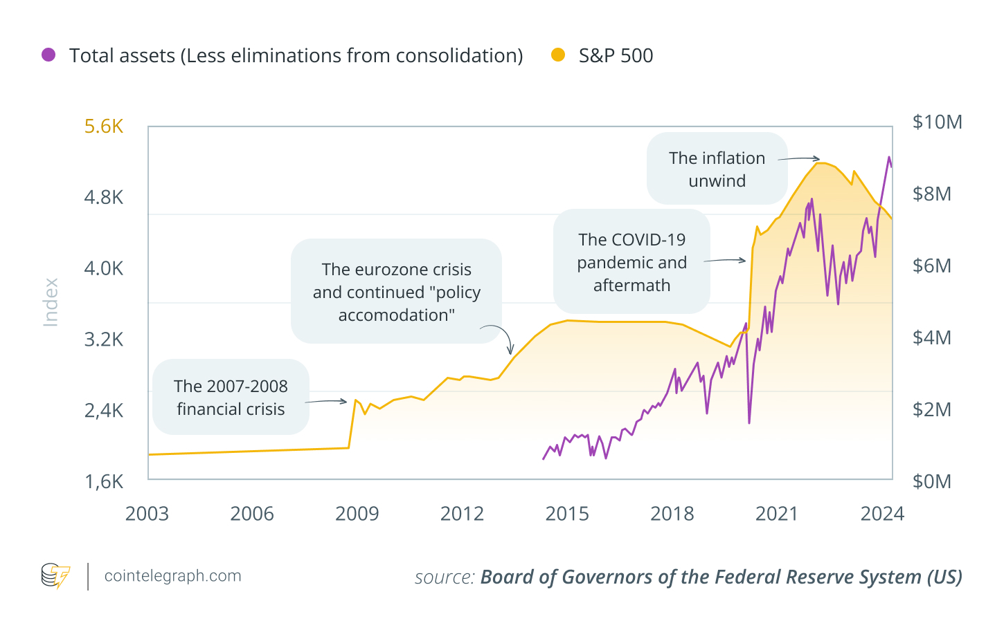 برای درک بهتر اینکه بیت کوین در شرایط مختلف چه واکنشی نشان میدهد، باید فراتر از تصمیمات مربوط به نرخ بهره را نگاه کنیم و به بررسی ساختار درونی سیستم مالی بپردازیم: