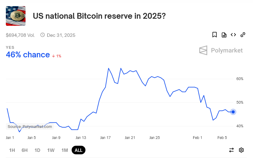 هنوز مشخص نیست که دولت ترامپ چنین برنامهای را اجرایی خواهد کرد یا خیر. در همین حال، پلتفرمهای پیشبینی پالیمارکت (Polymarket) و کالشی (Kalshi) احتمال ایجاد ذخیره بیت کوین تا سال ۲۰۲۵ را بهترتیب ۴۶٪ و ۵۸٪ برآورد کردهاند.