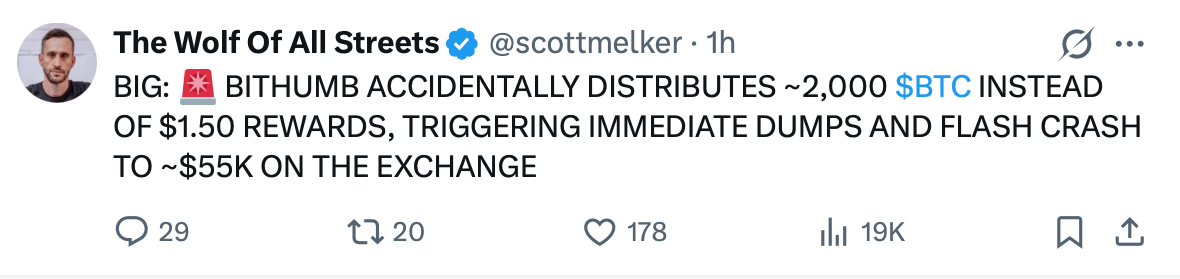 صرافی ارز دیجیتال کرهای بیت هامب (Bithumb) تایید کرد که بروز یک نقص فنی داخلی در زمان اجرای یک طرح تبلیغاتی، باعث توزیع اشتباه پاداشها و نوسان موقت قیمتها در این پلتفرم شده است. این صرافی در بیانیهای اعلام کرد که با وجود این اختلالات، هیچکدام از داراییهای مشتریان از دست نرفته و امنیت کامل پلتفرم حفظ شده است.