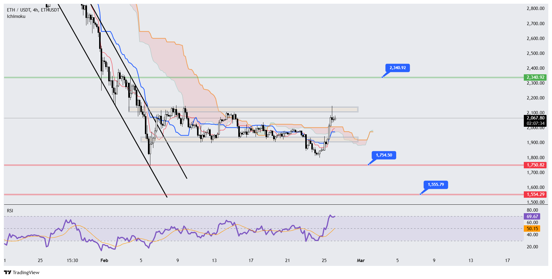 نمودار ۴ ساعته تحلیل تکنیکال اتریوم – منبع: Tradingview