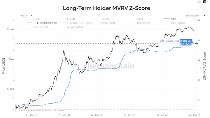 از نظر تاریخی، در کفهای عمیق چرخهای، قیمت بارها به زیر بهای تمام شده دارندگان بلندمدت نفوذ کرده است. همین نفوذها معمولاً به عنوان فرصتهای خرید بلندمدت و اصطلاحاً نسلساز شناخته میشوند. در حال حاضر، طبق این تحلیل بیت کوین با دادههای آنچین، قیمت هنوز فاصله قابل توجهی با این ناحیه دارد و همین میتواند استدلالی باشد برای اینکه بازار شاید هنوز «آن درد لازم» برای ساخت کف پایدار را تجربه نکرده باشد.