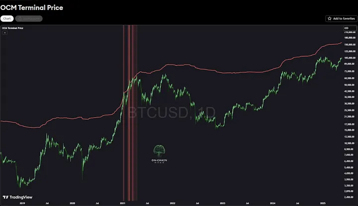 این مدل در گذشته سقفهای چرخهای را محدودتر برآورد کرده و در این سناریو، محدودهای نزدیک ۱۶۰ هزار دلار را نشان میدهد.