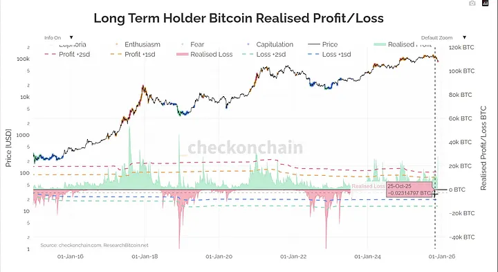 در سوی دیگر، هولدرهای کوتاهمدت تصویر متفاوتی دارند: نشانههایی از اینکه سود تحقق نیافتهشان کاهش یافته، زیانهایشان پررنگتر شده و با شدت بیشتری از بازار خارج میشوند.
