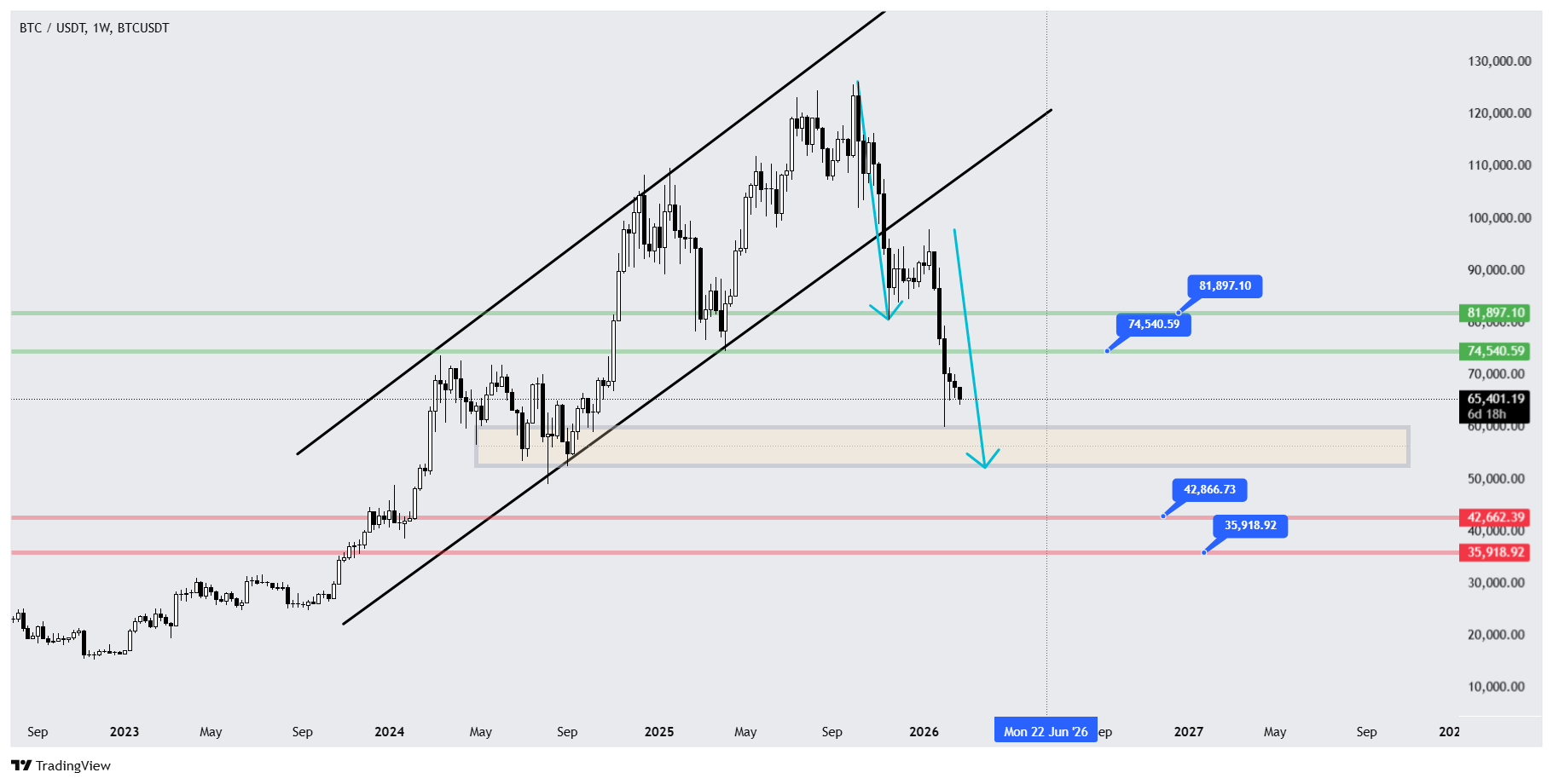 تحلیل تکنیکال بیت کوین در تایم‌فریم هفتگی