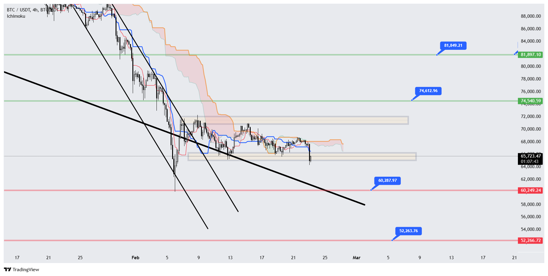 تحلیل تکنیکال بیت کوین ۴ اسفند ۱۴۰۴؛ سناریوی سقوط تا ۳۵هزار یا بازگشت به ۸۲هزار دلار؟