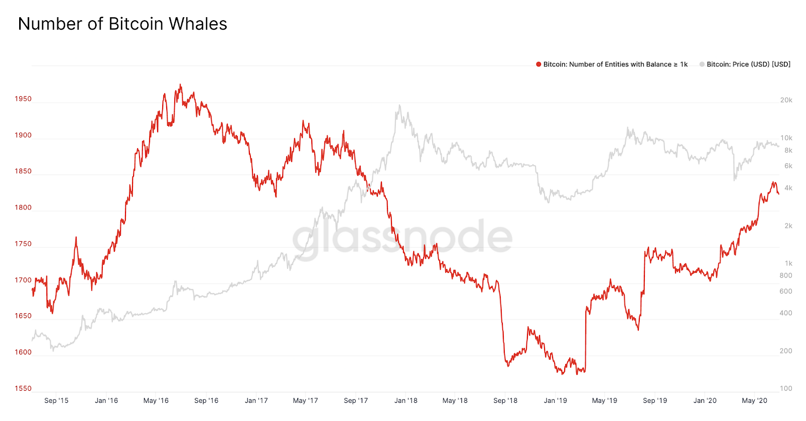 اطلاعاتی که اخیرا توسط گلس نود (Glassnode) منتشر شده است نشان میدهد در حال حاضر بیش از ۱۸۰۰ نهنگ بیت کوین وجود دارد. از لحاظ کلی، افزایش تعداد نهنگ ها میتواند نکته مثبتی در نظر گرفته شود.