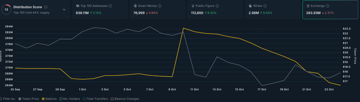 این روند خرید باعث شده موجودی LINK در صرافیها بهشدت کاهش یابد و از ۲۸۴ میلیون LINK در ماه سپتامبر، به ۲۶۳ میلیون LINK در اکتبر رسیده است.