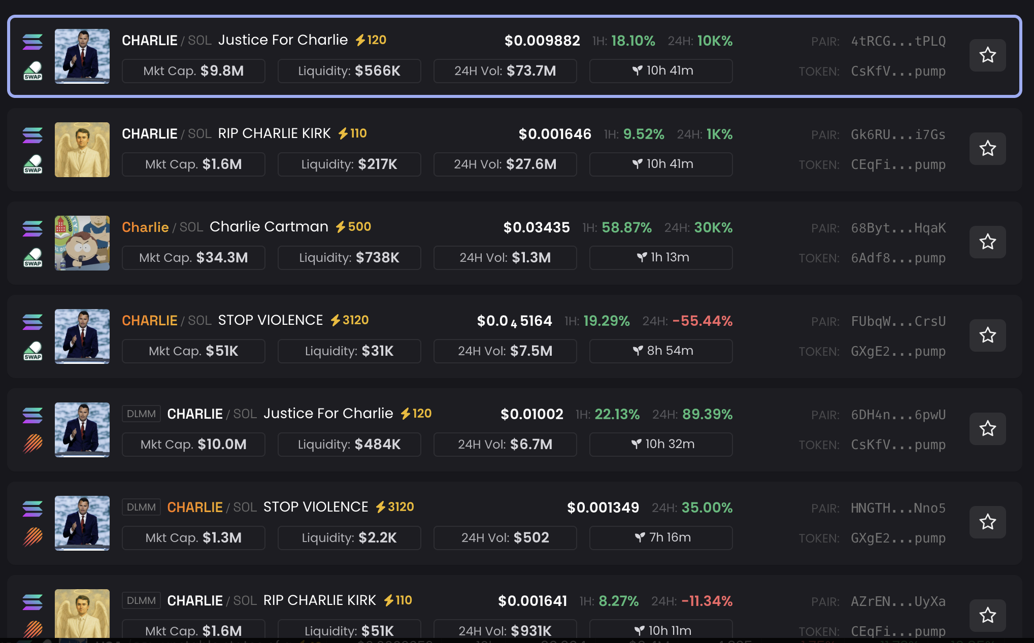 در حالی که این دو رویداد باعث اندوه و بحث‌های سیاسی گسترده‌ای شد، گروهی از فعالان بازار کریپتو از آن به عنوان فرصتی برای سودجویی استفاده کردند. داده‌های وب‌سایت DexScreener نشان می‌دهد که تقریباً بلافاصله پس از انتشار اخبار، چندین توکن با نام عدالت برای چارلی (Justice for Charlie) ایجاد شدند. به طور مشابه، چندین توکن «عدالت برای ایرینا» نیز در ماه سپتامبر عرضه شدند که پس از اعلام کمک مالی ۱ میلیون دلاری ایلان ماسک (در موضوعی مرتبط)، تب و تاب خرید آن‌ها برای مدتی افزایش یافت.