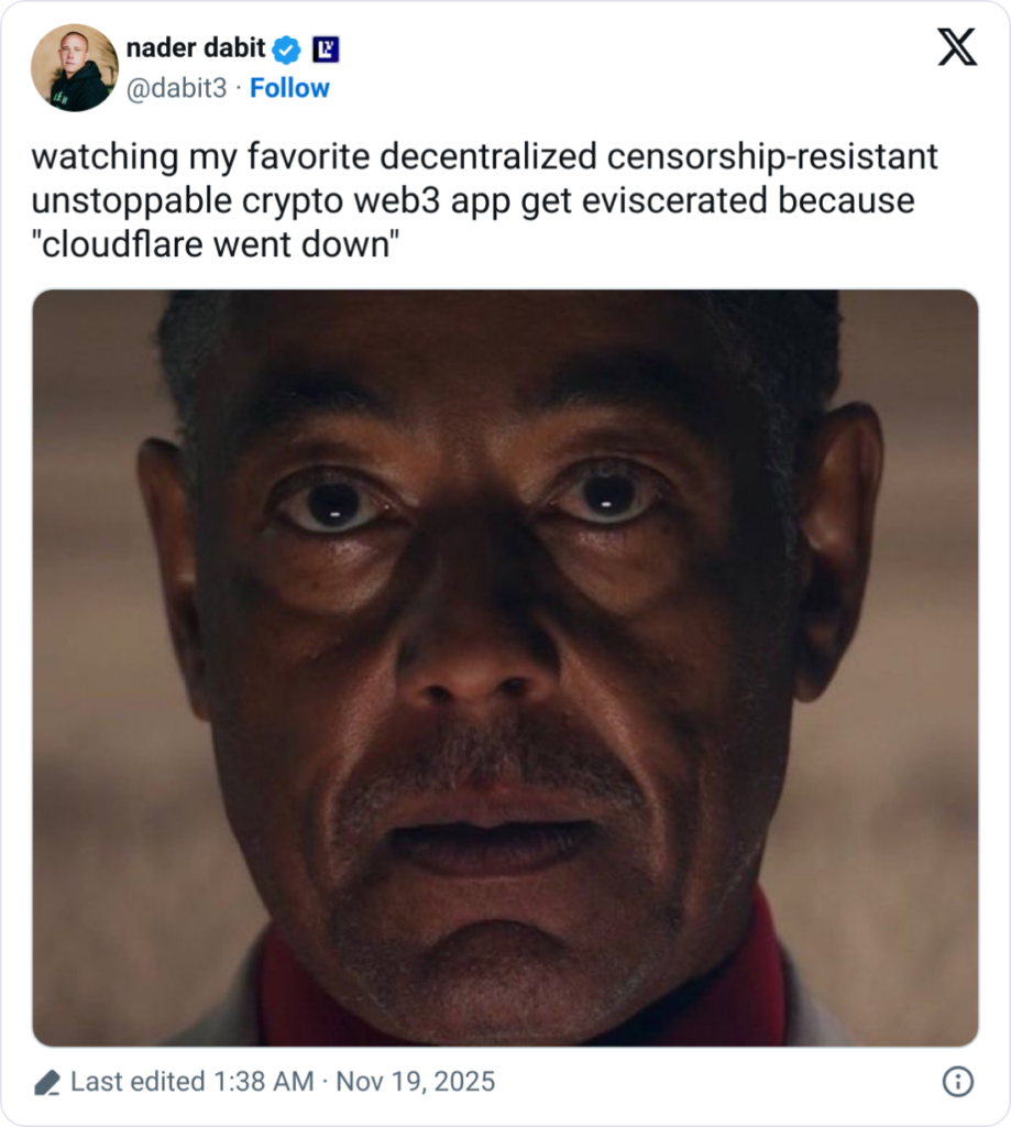 این اتفاق انتقادهای تازه‌ای را درباره اتکای بیش‌ازحد صنعت کریپتو به زیرساخت‌های متمرکز برانگیخت که حتی ماه گذشته نیز هم‌زمان با اختلال گسترده در آمازون وب‌سرویسز (Amazon Web Services)، برخی از آن‌ها از نفس افتادند.
