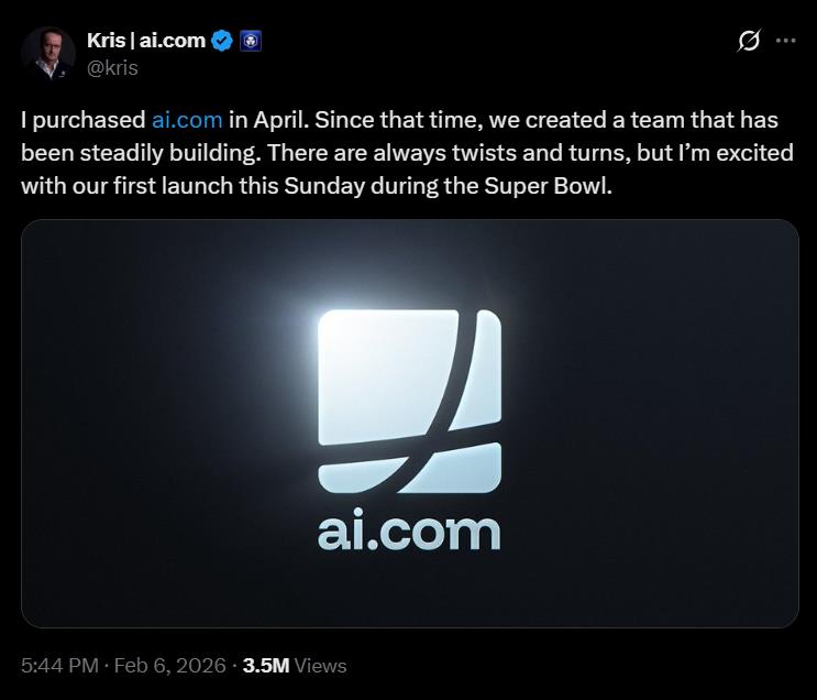 کریس مارشالک (Kris Marszalek)، بنیانگذار و مدیرعامل صرافی کریپتو دات کام (Crypto.com)، با خرید دامنه AI.com به مبلغ تقریبی ۷۰ میلیون دلار که تماماً از طریق ارزهای دیجیتال پرداخت شده، یکی از بزرگترین معاملات افشا شده در تاریخ دامنههای اینترنتی را رقم زده است.