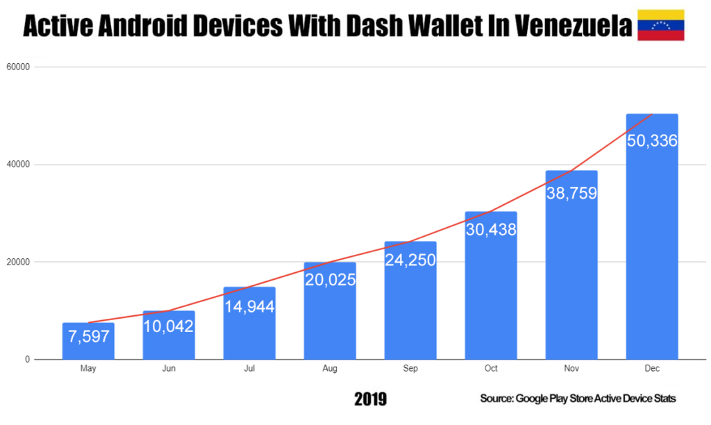 در عرض یک ماه، آمار استفاده از کیف پول اندروید دش چندین برابر شد. حدود ۸۵ درصد جمعیت ونزوئلا دارای گوشی هوشمند هستند. گزارشها حاکی از آن هستند که بیش از ۲۵۰۰ تاجر در کشور ونزوئلا در حال پذیرش ارز دیجیتال به عنوان وسیله پرداخت هستند.