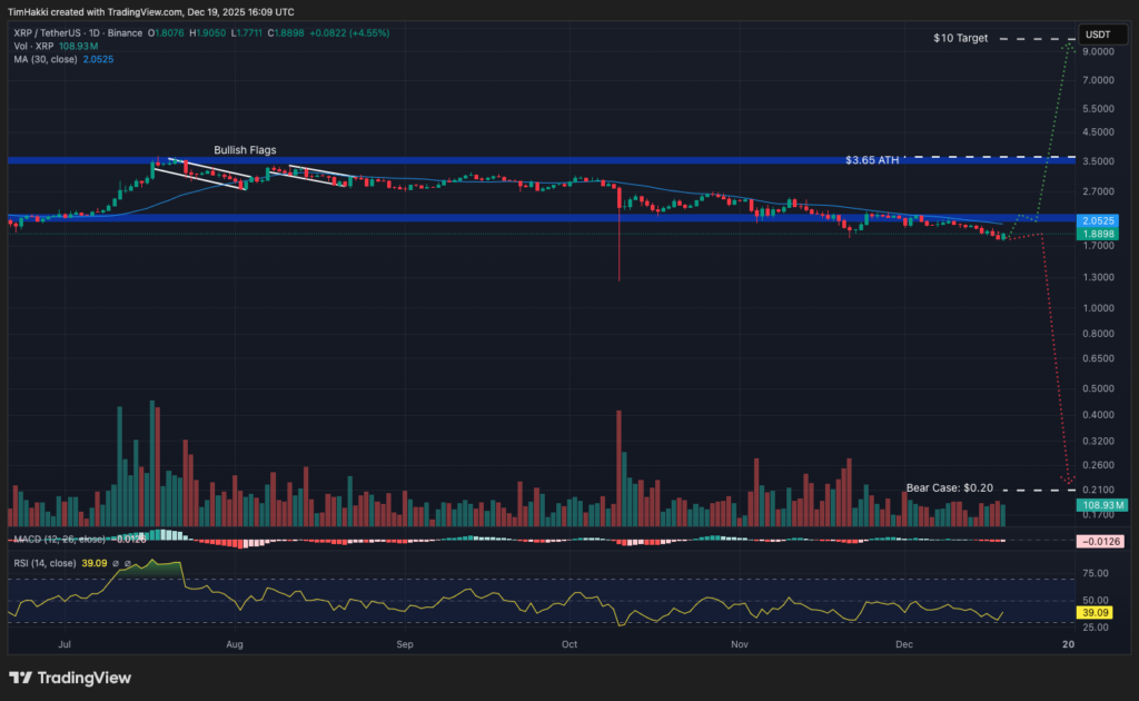این سناریو در تضاد کامل با عملکرد قدرتمند ریپل در اوایل سال جاری قرار دارد؛ زمانی که این توکن پس از هفت سال توانست یک سقف تاریخی جدید ثبت کند. قیمت XRP در ماه جولای به ۳.۶۵ دلار رسید؛ درست پس از آنکه شرکت ریپل به یک پیروزی حقوقی مهم در پرونده خود علیه کمیسیون بورس و اوراق بهادار آمریکا دست یافت.