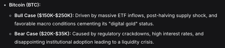 با وجود جاهطلبانهبودن این سناریوها، مدل هوش مصنوعی همچنان تأکید میکند که هدف ۲۰۰,۰۰۰ دلاری در اوایل ۲۰۲۶، بهویژه در صورت شفافتر شدن قوانین رمزارزی در آمریکا و پیشبرد ایده ذخیره استراتژیک بیت کوین، دور از ذهن نیست.