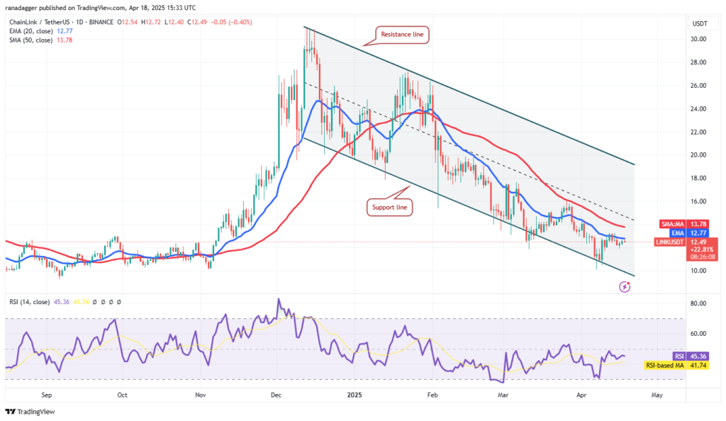 خریداران (گاوها) تلاش خواهند کرد قیمت را به بالای میانگینهای متحرک برسانند. اگر موفق به انجام این کار شوند، قیمت چین لینک میتواند تا ۱۶ دلار رالی کند. فروشندگان سعی خواهند کرد جلوی این رالی را در ۱۶ دلار بگیرند، اما اگر خریداران غالب شوند، چین لینک میتواند به خط مقاومت برسد.