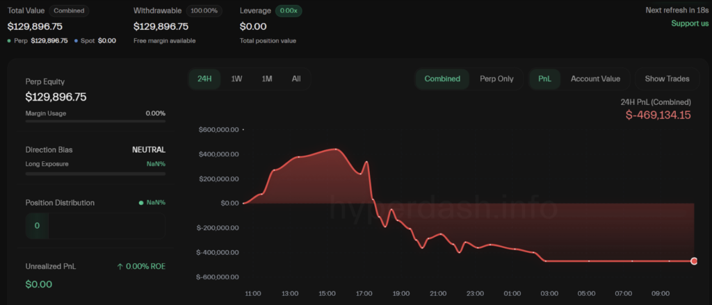 اما Lookonchain اعلام کرد که او دوباره روی اتریوم پوزیشن لانگ باز کرده و در سقوط بازار، ۶.۲۲ میلیون دلار از دست داده است. اکنون فقط ۷۷۱,۰۰۰ دلار در حساب او باقی مانده و تقریباً همه سود چهار ماه اخیرش تنها در دو روز نابود شده است.