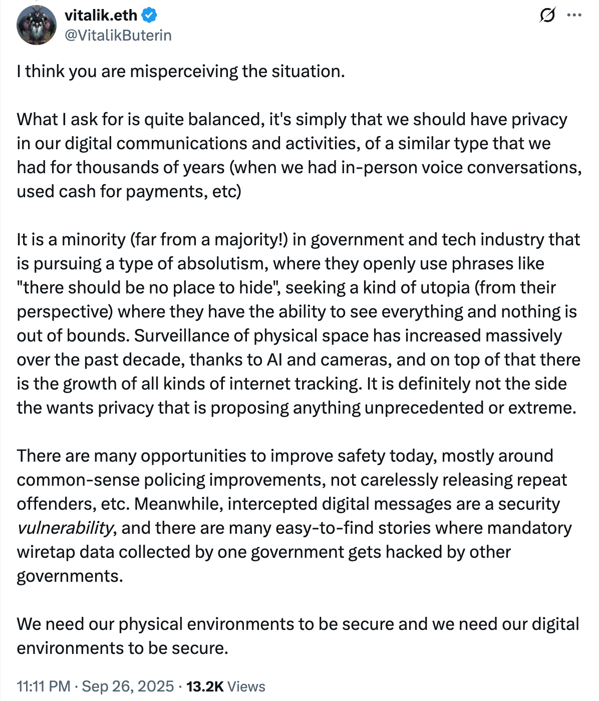 ویتالیک بوترین (Vitalik Buterin) – همبنیانگذار اتریوم – در واکنش به این طرح از جامعه کریپتو خواسته است که در برابر آن بایستند. او هشدار داد: