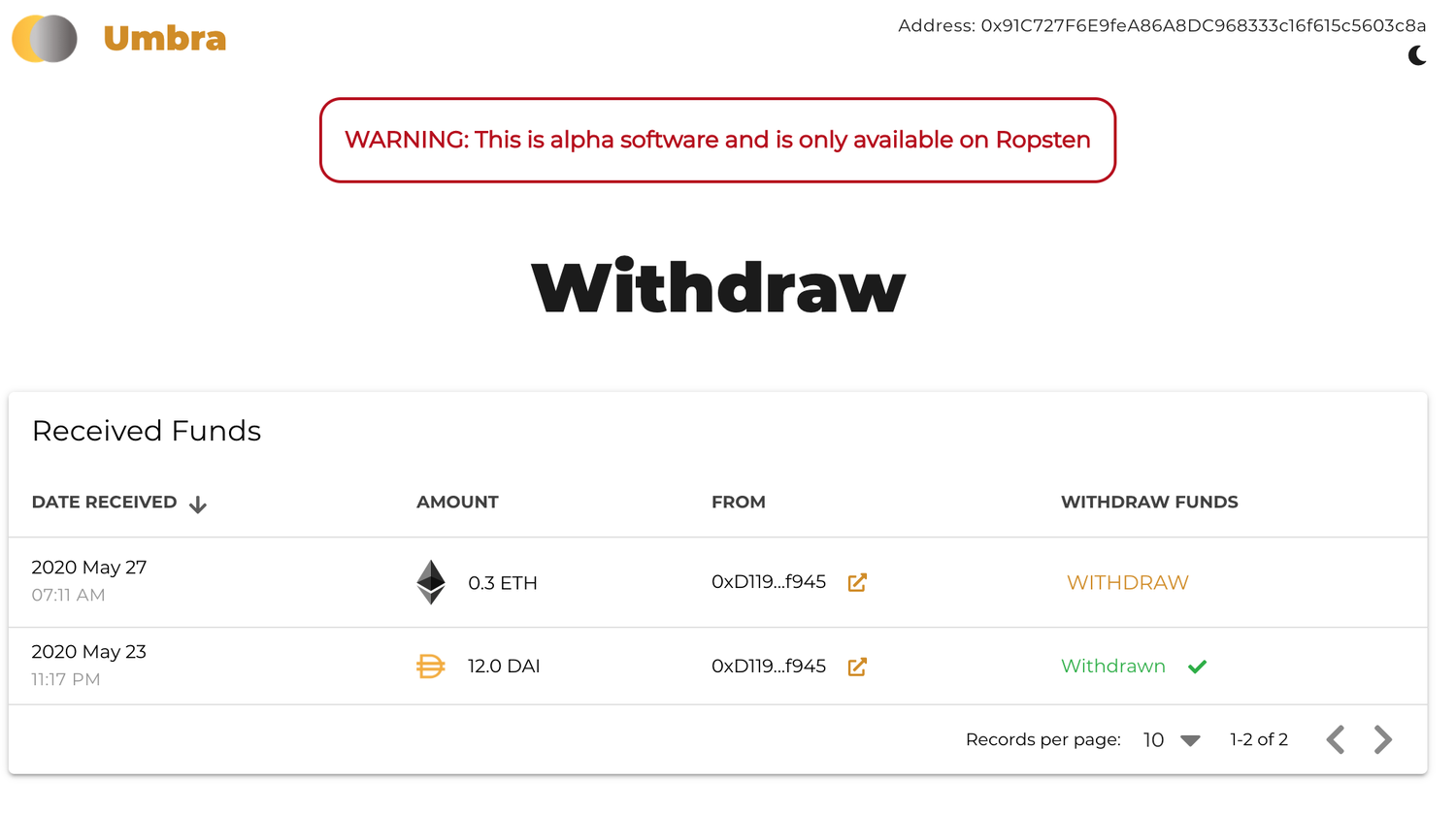 در تاریخ ۱ آوریل، ویتالیک بوترین موسس اتریوم تقاضایی مبنی بر ارتقای حریم خصوصی تراکنش ها را توییت کرد. یک ماه بعد، خواسته او به شکل آمبره (Umbra) محقق شد. آمبره پروتکلی برای پرداخت های مخفی در اتریوم است.