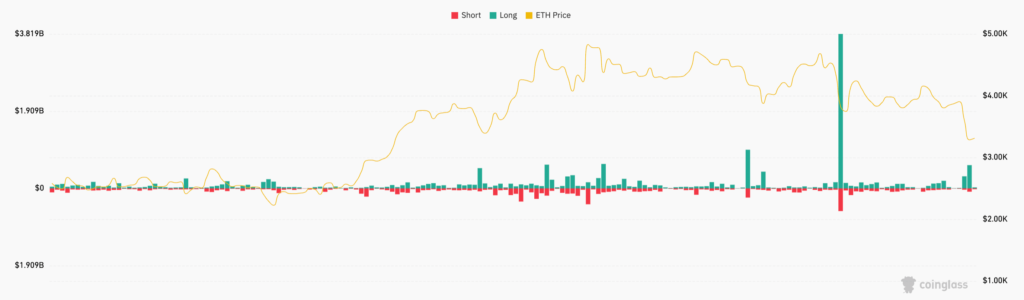 بزرگ‌ترین لیکوییدیشن روز در صرافی غیرمتمرکز هایپرلیکویید (Hyperliquid) رخ داد و شامل یک معامله‌ جفت‌ارز ETH/USD به ارزش ۲۶ میلیون دلار بود. مقیاس این رویداد مشابه اتفاقات اول آگوست (۱۱ مرداد) و ۲۲ سپتامبر (۳۱ شهریور) است که در هر دو مورد، صدها میلیون دلار از پوزیشن‌های لانگ ETH حذف شدند و افتی ۱۴٪ در قیمت به‌دنبال داشتند.