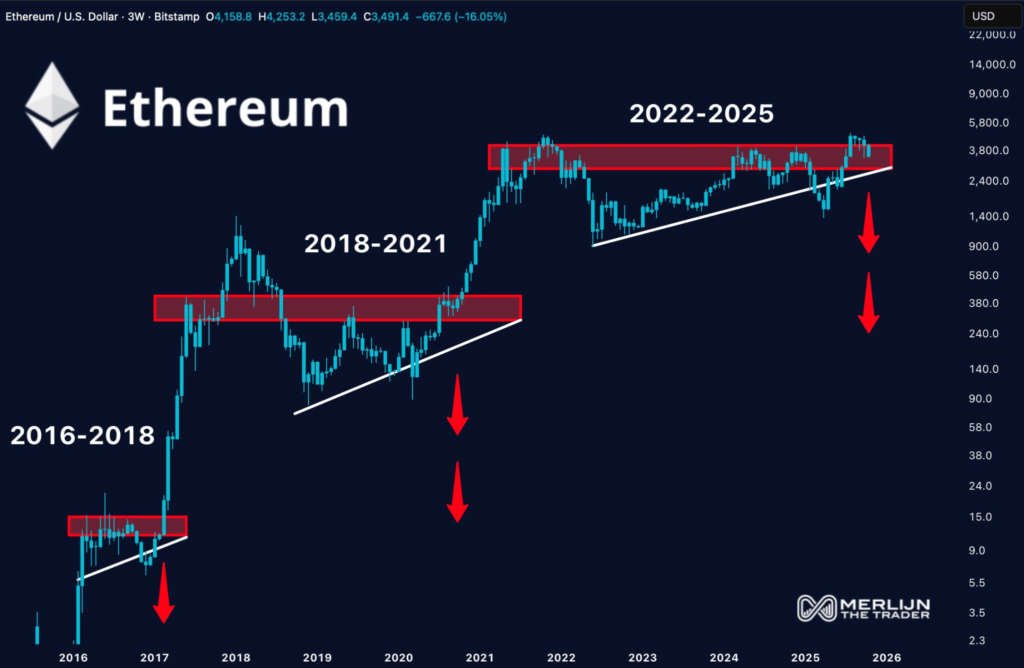 نمودار ۳ هفته‌ای قیمت اتریوم – منبع: Merlijn The Trader