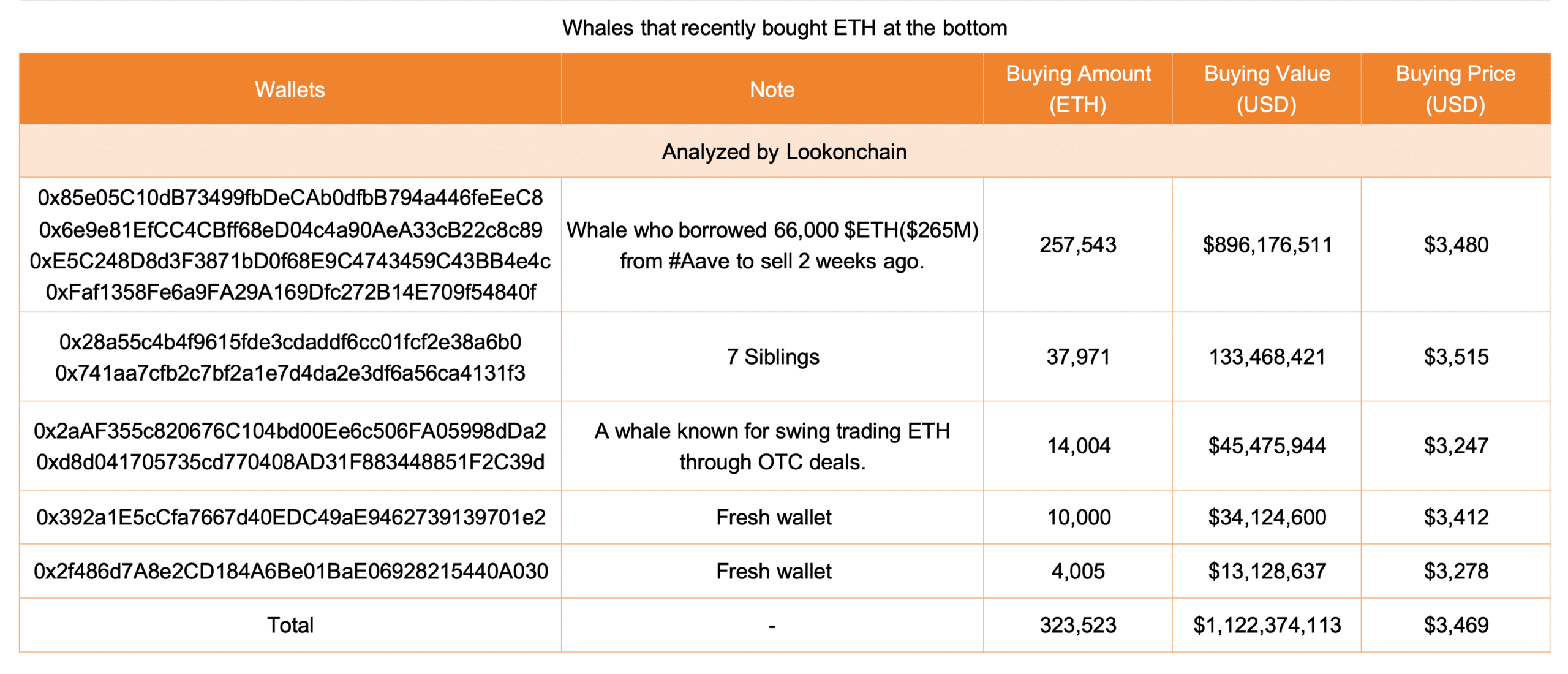 آدرس نهنگ‌هایی که اخیراً در کف اتریوم خریده‌اند – منبع: Lookonchain