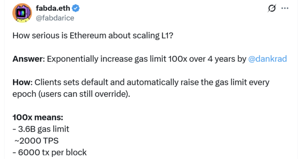 به گزارش میهن بلاکچین، دنکراد فیست که راهکار ذخیرهسازی داده دنک شاردینگ (Danksharding) به افتخار او نامگذاری شده، در تاریخ ۲۷ آوریل (۷ اردیبهشت)، پروپوزال EIP-9698 را مطرح کرد. این پروپوزال، «برنامه زمانبندی رشد تعیینشده گس لیمیت» را با شروع از دوره (Epoch) ۳۶۹۰۱۷ معرفی میکند که این دوره از اوایل ماه ژوئن (خرداد) آغاز میشود.