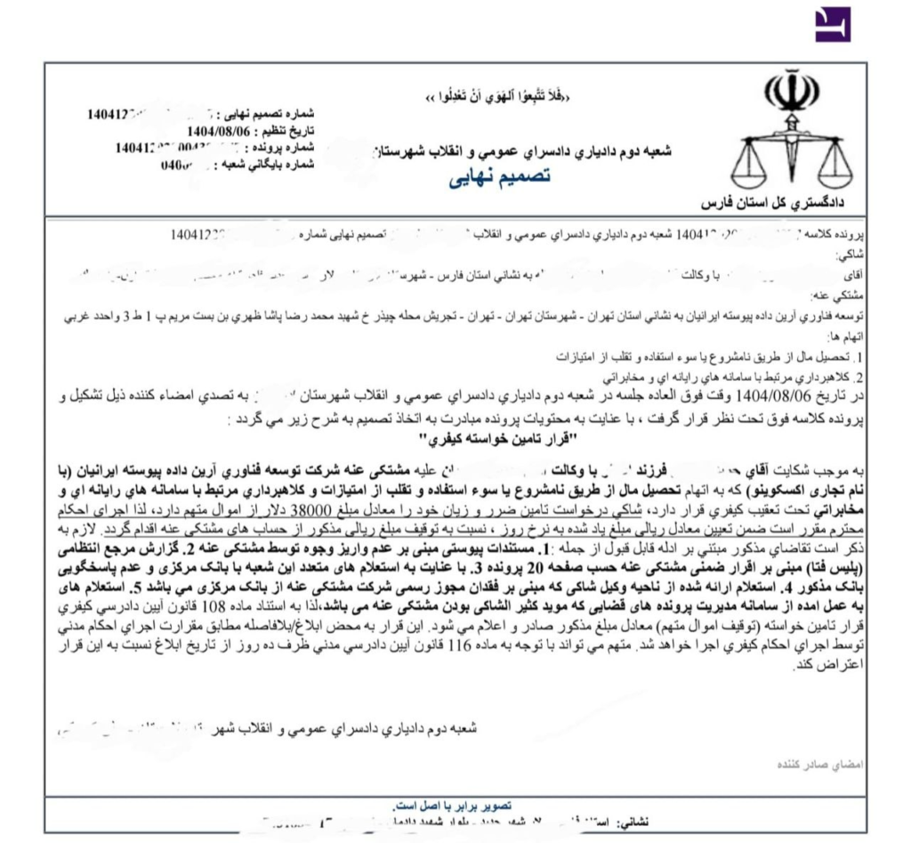 (رسانه میهن بلاکچین صرفاً نقل‌قول‌کننده این مدارک است و مسئولیت صحت و تفسیر حقوقی آن‌ها برعهده مراجع قضایی است.)
