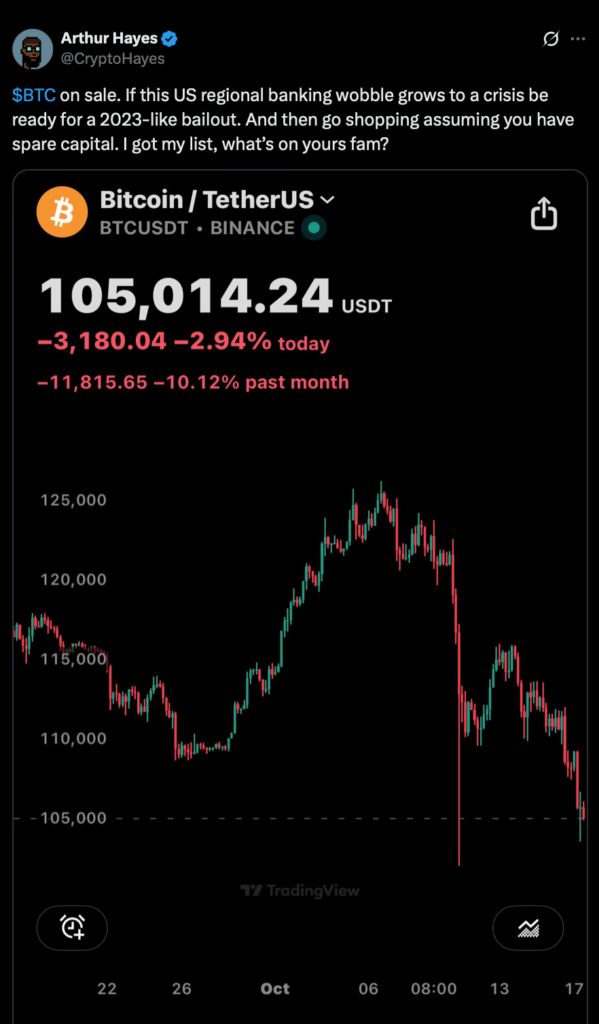 در چنین فضایی، آرتور هیز تلاش کرد تا از گسترش ترس در بازار جلوگیری کند. او در پستی در شبکه اجتماعی ایکس (X) نوشت: