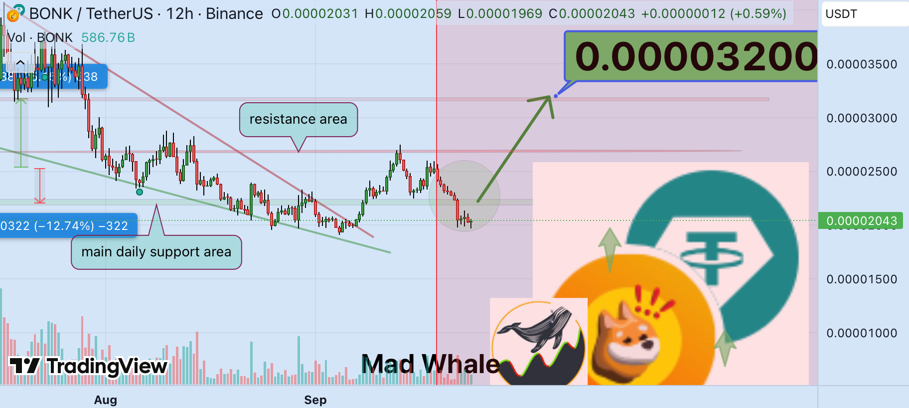 در لحظه نگارش این گزارش، بونک با قیمت حدود ۰.۰۰۰۰۲۰۵۸ دلار معامله میشود و بیش از ۸٪ افت روزانه را ثبت کرده است. با این وجود، در کوتاهمدت همچنان احتمال بازگشت قوی وجود دارد؛ به شرط آنکه معاملهگران، مدیریت ریسک را در اولویت خود قرار دهند.