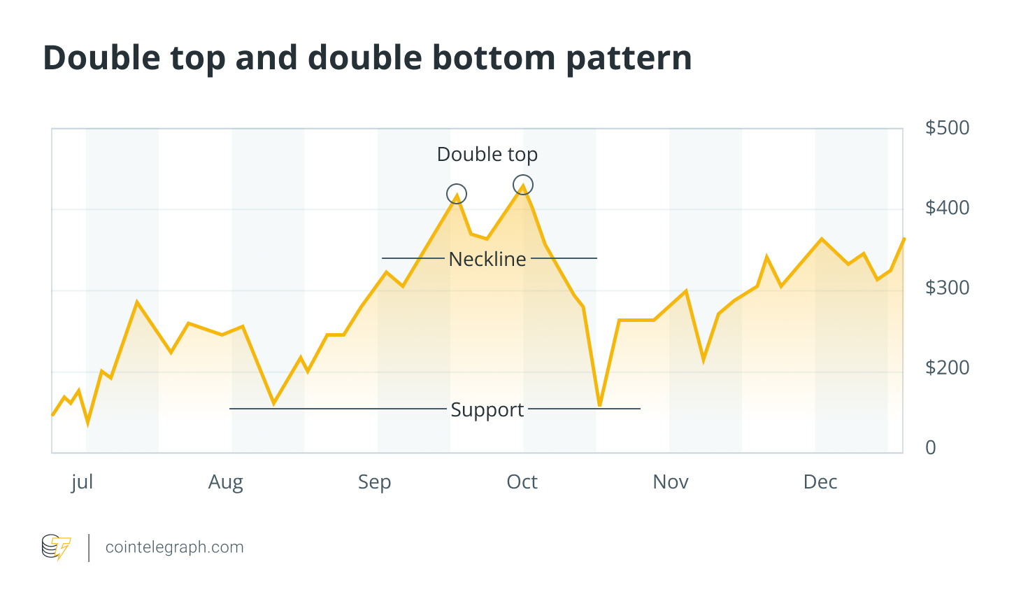 - مثال: این الگو اغلب در پامپ و دامپ میمکوینها دیده میشود. برای مثال، دوجکوین (DOGE) در میانه ۲۰۲۵ پس از جهش ناشی از هیجان شبکههای اجتماعی الگوی سقف دوقلو تشکیل داد و سپس با اصلاح شدید مواجه شد.