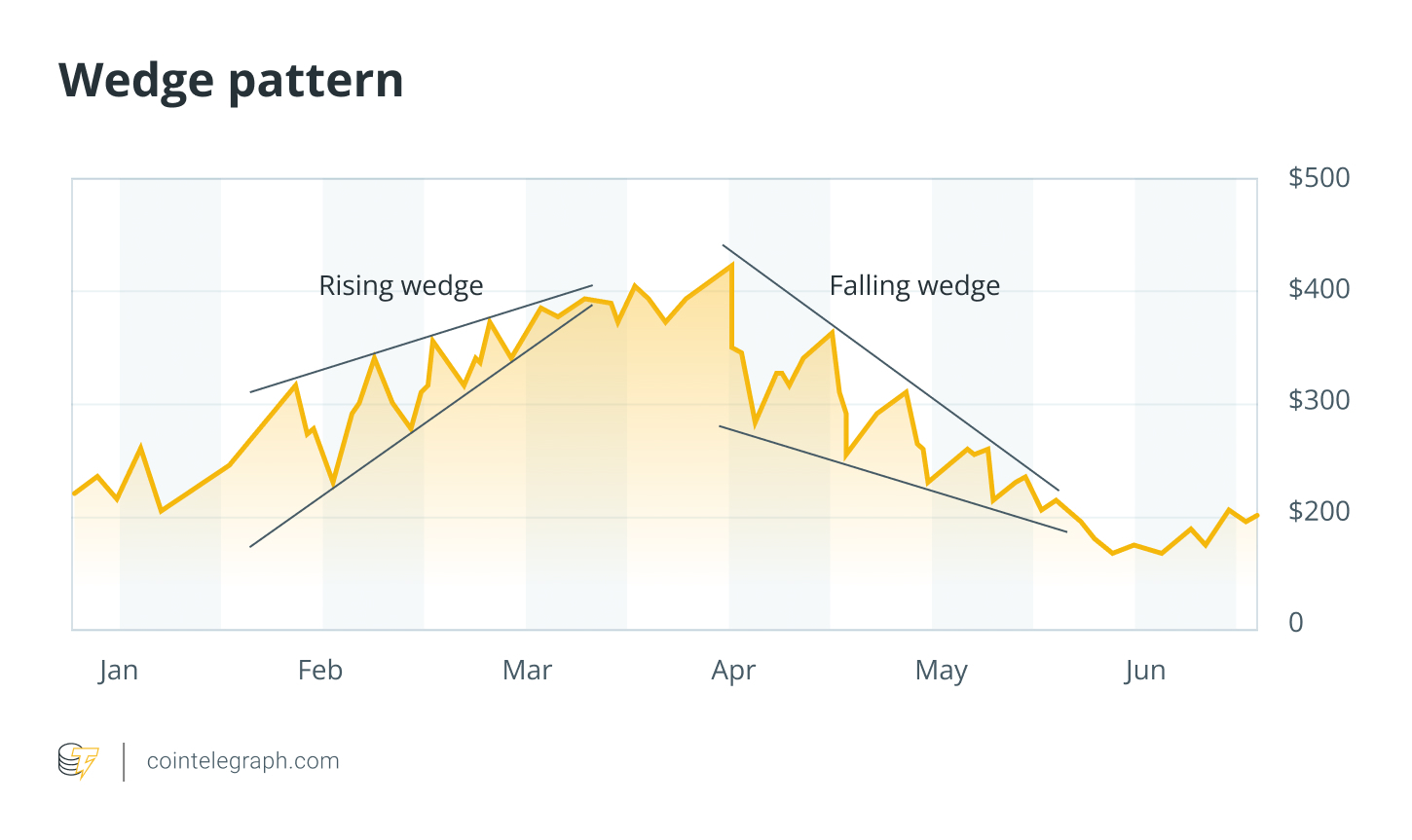 الگوهای کنج زمانی شکل میگیرند که خطوط روند همگرا و شیبدار باشند؛ کنج صعودی معمولاً نزولی و کنج نزولی معمولاً صعودی است.