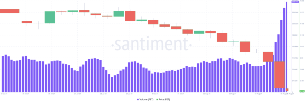 طبق دادههای روز گذشته، حجم معاملات توکن FET در ۲۴ ساعت بهمیزان ۲۴۵٪ افزایش داشته و به نزدیک ۳۰۰ میلیون دلار رسیده است. این افزایش نشاندهنده حجم بالای خرید و فروش این توکن است.