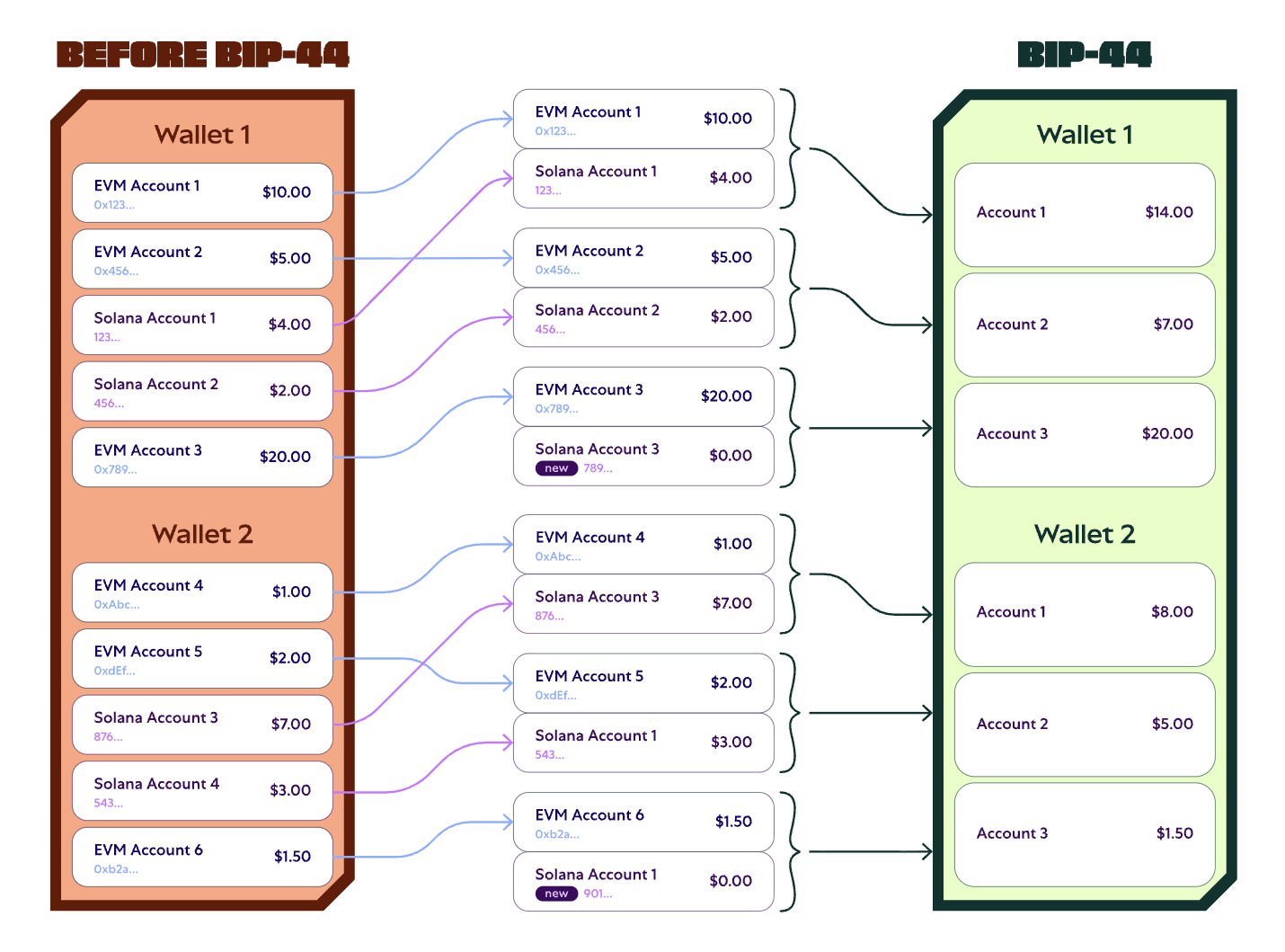 این تغییر بر پایه استاندارد BIP-44 طراحی شده است؛ این ساختار به کیف پولها اجازه میدهد چندین آدرس را از یک عبارت بازیابی واحد تولید و مدیریت کنند. البته متامسک تأکید کرده است که پشتیبانی از حسابهای سختافزاری هنوز به شبکههای EVM محدود است و سولانا در این بخش فعلاً پشتیبانی نمیشود.