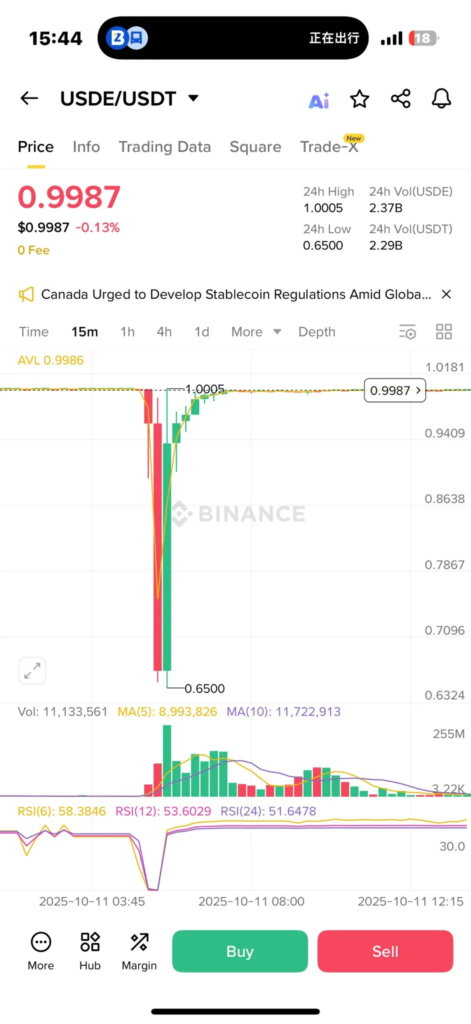 نتایج کاملاً مشهود بود؛ قیمت اسپات USDE در بایننس بسیار پایینتر از سایر صرافیها سقوط کرد، در حالی که بازخریدهای آنچین (On-Chain) آن عادی بود. حجم معاملات اسپات ۲۴ ساعته این سه دارایی در بایننس حدود ۳.۵ تا ۴ میلیارد دلار بود و گردش سود و زیان محققشده (PnL) بین ۵۰۰ میلیون تا ۱ میلیارد دلار تخمین زده میشود.