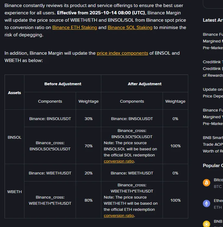 علاوه بر محصولات استاندارد با مارجین USDT و مارجین کوین، بایننس همچنین اجازه میداد تا از مشتقات مبتنی بر اثبات سهام (PoS) و استیبلکوینهای دارای بازده نیز به عنوان وثیقه مارجین یکپارچه استفاده شود. سه دارایی که در طول این حمله بیشترین آسیب را دیدند، USDE، wBETH و BnSOL بودند. از آنجا که این داراییها به عنوان وثیقه حساب یکپارچه عمل میکردند، قیمت لیکوئید شدن آنها به جای آنکه بر اساس داراییهایی با نرخ ثابت (Hard Peg) تعیین شود، از قیمتهای دفتر سفارشات اسپات (Spot Order Book) خود بایننس استخراج میشد.
