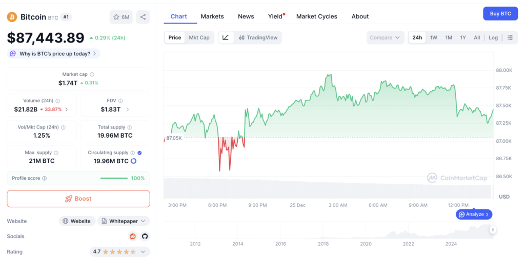 او معتقد است با وجود این نوسانات شدید، بیت کوین دارایی منحصربهفردی است که شاید نمونهای مشابه آن دوباره تکرار نشود. او پیشبینی میکند اوج بعدی بازار صعودی بیت کوین در سپتامبر ۲۰۲۹ شکل بگیرد. در زمان نگارش این مطلب، بیت کوین حوالی ۸۷٬۴۴۰ دلار معامله میشود و نوسان محدودی را تجربه میکند.