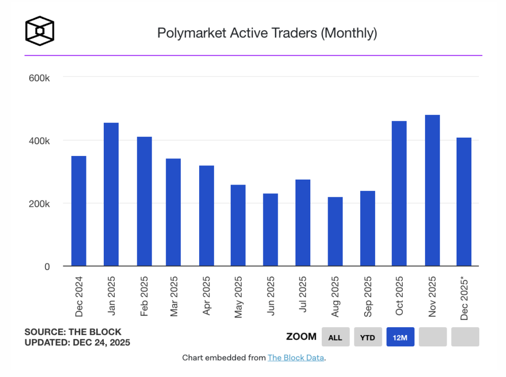 تعداد معامله‌گران فعال پالی‌مارکت در مقیاس ماهانه – منبع: The Block