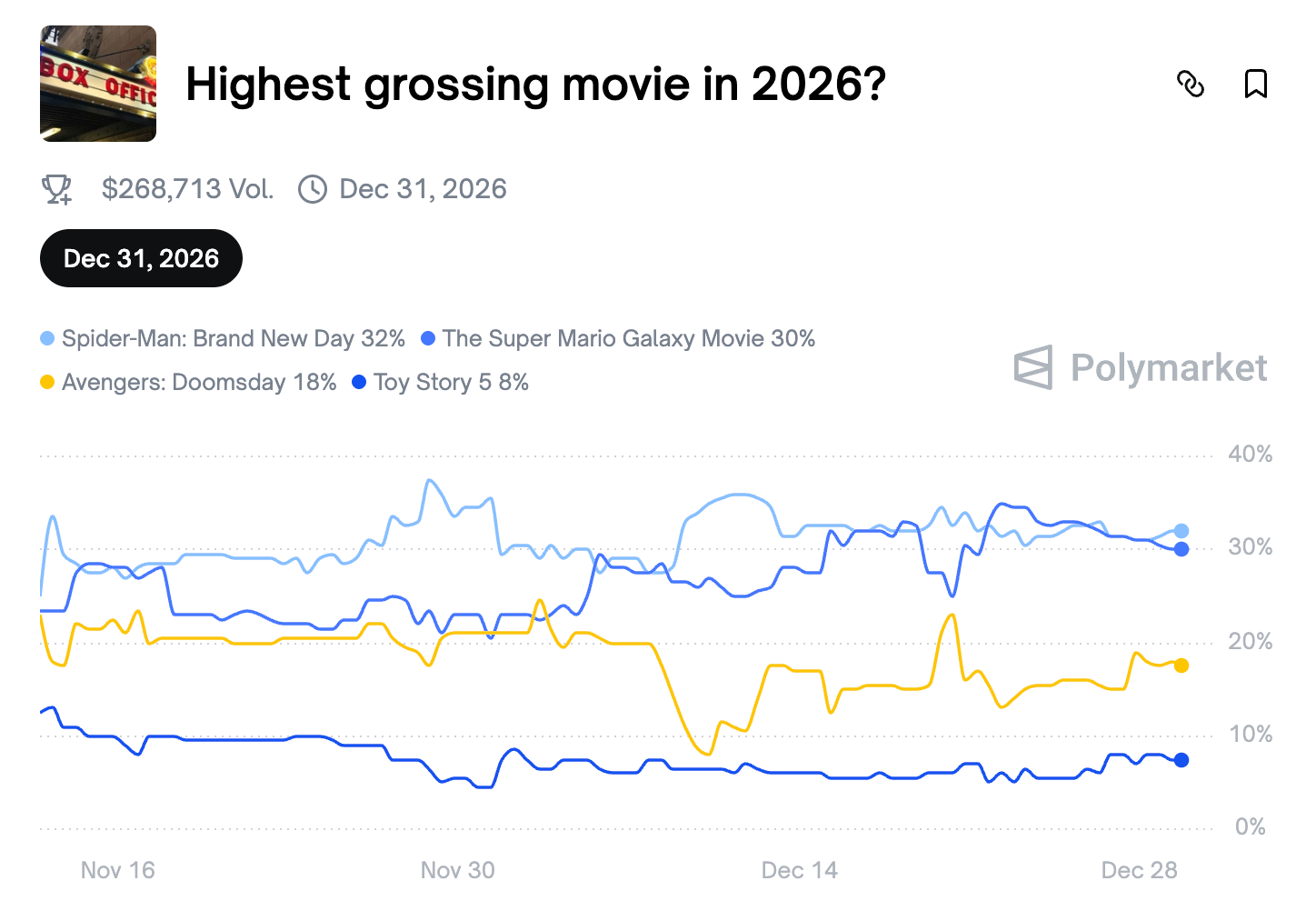 پیش‌بینی پرفروش‌ترین فیلم سال ۲۰۲۶ - منبع: Polymarket
