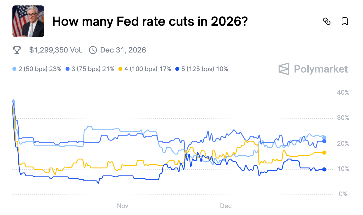 پیش‌بینی میزان کاهش نرخ بهره در سال ۲۰۲۶ – منبع: Polymarket