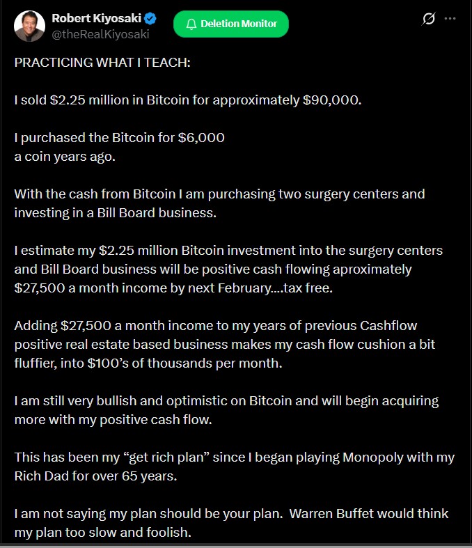 با این حال، کیوساکی در پستهای اخیرش دوباره تاکید کرده است: